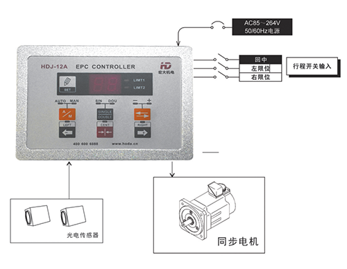 | HDJ-12A型光電糾偏控制器是一種跟蹤工作材料的邊緣或印刷線條進行高準確度的差動和擺動可選擇糾偏控制器。HDJ-12A是由大規模工業集成電路組成,具有惡劣工作環境抗干擾能力強,可靠性高,使用壽命長等優點。很適應包裝行業連續不停機生產工作需要,它已廣泛應用到塑料薄膜分切機、特種材料分切機、涂布機、印刷機、復合機等設備上。光電糾偏控制系統是由糾偏控制器、光電眼、電機伺服機構構成。   系統性能參數: · 可手動/自動工作; · 可工作于對邊,對線方式 · 單/雙電眼輸入 · 響應速度可調 · 帶限位輸入 · 糾偏精度≦1mm · 驅動單相同步電機